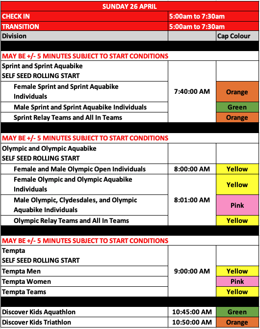 The triathlon is held on the morning of Sunday 26 April 2026.